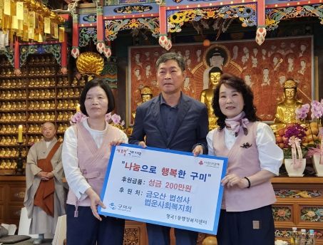 최성국 형곡1동장은“부처님 오신날을 맞아 아낌없는 나눔을 실천해주신 법운사회복지회에 감사드리며, 앞으로도 지역사회 발전과 소외된 이웃을 돕기 위한 지속적인 나눔을 실천해 주시기 바란다”고 전했다.