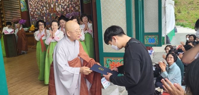 주지 혜진스님은 “이번 장학금이 미래를 이끌어갈 인재들에게 꿈을 위한 도약의 발판이 되길 바란다”라며 “부처님의 자비가 소외된 이웃들에게 전해지길 바란다”라고 말했다.