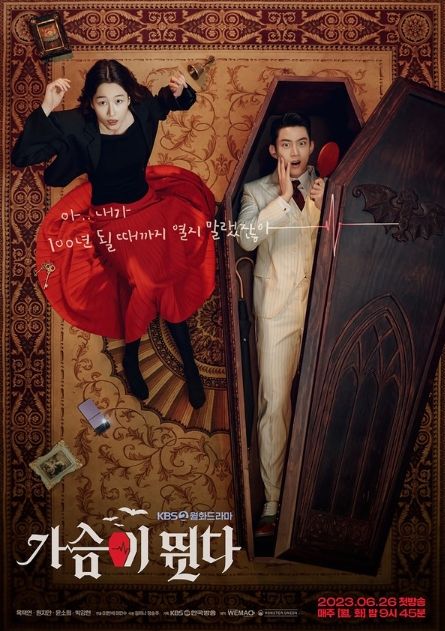 오는 6월 26일(월) 첫 방송 예정인 KBS 2TV 새 월화드라마 ‘가슴이 뛴다’(연출 이현석, 이민수 / 극본 김하나, 정승주 / 제작 위매드, 몬스터유니온)는 100년 중 하루 차이로 인간이 되지 못한 반인뱀파이어 선우혈과 인간미라고는 찾아볼 수 없는 여자 주인해가 어쩌다 동거를 시작하며, 진정한 온기를 찾아가는 아찔한 목숨 담보 공생 로맨스다.