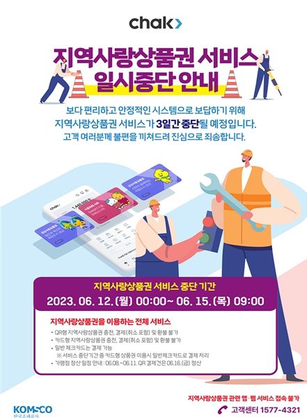 이에 따라, 원주사랑상품권 구매, QR/카드 결제 정책 수당 지급 및 사용, 회원가입, 가맹점 전산 등 주요 서비스가 중단된다.