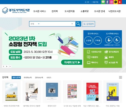 경기도사이버도서관은 소장형 전자책, 구독형 전자책, 영어 전자책 등 3종류의 전자책 서비스를 제공하고 있다.