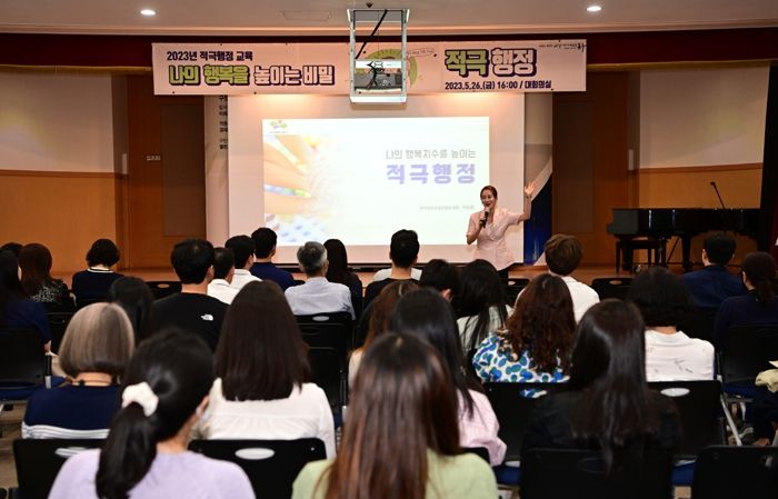 강의는 인사혁신처 적극행정 전담강사로 활동 중인 이승은 강사가 ‘나의 행복을 높이는 비밀, 적극행정’이라는 주제로 약 2시간 가량 진행했다.