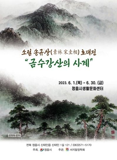 [제주교통복지신문 김강석 기자] 문화예술의 싹을 틔워가는 정읍시생활문화센터(신태인읍 소재)는 내달 1일부터 30일까지 소림 송규상 초대전 '금수강산의 사계'를 선보인다.