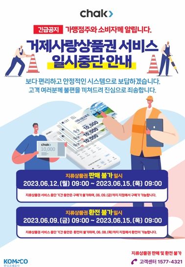 상품권 판매 서비스 중단 기간은 6월 12일(오전 9시)부터 15일(오전 9시)까지로 위 기간 동안 상품권 판매가 불가하며, 6월 15일 오전 9시 이후부터 상품권 판매가 재개된다.