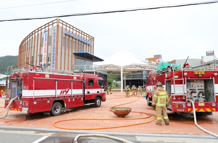 이번 훈련은 무형문화재전수관에서 원인 미상의 대형 화재로 다수의 사상자 발생한 재난 상황을 가정해 진도군청 등 9개 유관기관·단체와 146명의 인원, 차량 29대가 동원되어 대규모로 실시됐다.