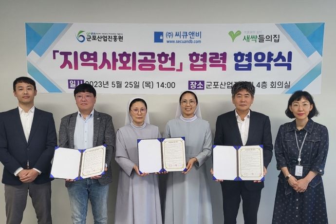 이날 협약을 통해 군포산업진흥원과 ㈜씨큐앤비는 군포시 미혼모지원 시설인 새싹들의 집에 매월 정기 후원을 하기로 하고 앞으로도 관내 기업과 협력을 통해 관내 취약계층 지원 및 기부문화 확산을 위해 상호 협력하기로 했다.