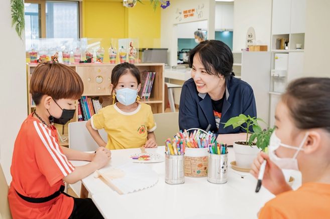 식사제공 뿐 아니라 식당 한켠에 놀이공간도 만들어 돌봄선생님이 식사를 마친 아이들에게 자연스레 체험 프로그램에 참여할 수 있도록 유도하며 아이들이 머무는 동안 돌봄공백이 없도록 배려했다.