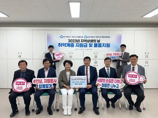 윤영자 이사장은 “어려운 상황에서도 나눔을 실천해주신 MG새마을금고이사장협의회·실무책임자협의회에 감사드리고, 전달받은 후원금품은 자원봉사자들과 함께 북구 지역 내 필요한 곳에 잘 전달하겠다.”라고 말했다.