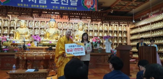 [제주교통복지신문 김강석 기자] 연수구는 지난 27일 부처님 오신 날을 맞아 연수구 동춘동에 있는 흥륜사로부터 불우이웃돕기 후원금 1천만 원을 전달받았다.