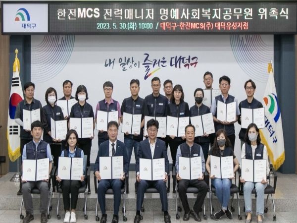 [제주교통복지신문 김강석 기자] 대전 대덕구가 복지 사각지대 발굴 강화를 위해 한전MCS(주)대덕유성지점(지점장 이상섭) 검침원을 명예사회복지공무원으로 위촉했다.