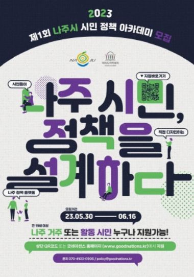 전라남도 나주시는 오는 6월 23일부터 7월 1일까지 매주 금·토요일 총 4회차로 구성된 ‘제1회 시민 정책 아카데미’를 개최할 예정이라고 30일 밝혔다.