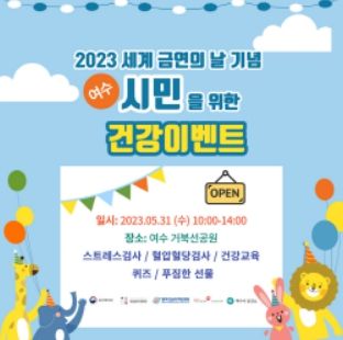[제주교통복지신문 김강석 기자] 여수시는 ‘제36회 세계 금연의 날’을 맞아 오는 31일 오전 10시~오후 2시까지 거북선 공원에서 캠페인을 추진한다.