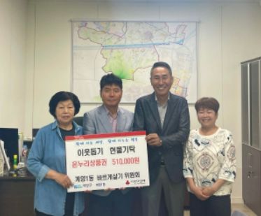 [제주교통복지신문 김강석 기자] 인천시 계양구 계양1동 바르게살기위원회는 지난 25일 계양1동 행정복지센터를 방문해 관내 저소득층 이웃 돕기를 위한 온누리 상품권 51만 원을 기탁했다.