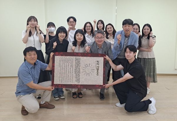 이날 행사는 동 행정복지센터 직원들이 다함께 모여 사발을 엎어서 그린 원을 중심으로 각자의 이름을 둘러가며 적고, 반부패 청렴문화 조성을 위해 노력하겠다고 맹세하는 자리로 마련됐다.