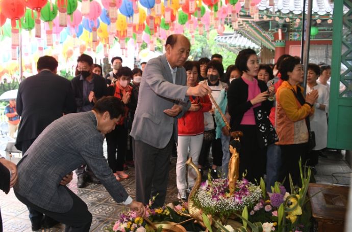 박형덕 동두천시장은 축사를 통해 “부처님의 자비와 함께 동두천 시민의 안전과 행복을 기원하며, 풍요롭고 아름다운 세상을 만드는데 더욱 큰 역할을 해주시기를 희망한다”고 말했다.