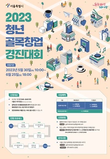 [제주교통복지신문 김강석 기자] 서울시는 역량 있는 청년 창업가를 발굴‧지원하는 ‘2023년 청년 골목 창업 경진대회’ 참여자를 5월 30일부터 6월 25일까지 모집한다고 밝혔다.