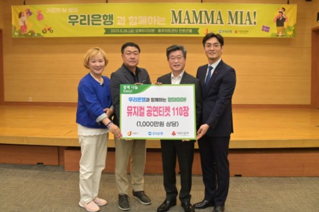 ㈜우리은행 중구청지점에서 뮤지컬 맘마미아 공연 티켓 110장(1천만 원 상당)이라는 통 큰 선물을 중구 한부모·다문화 가정 40여 가구에 전달한 것이다.
