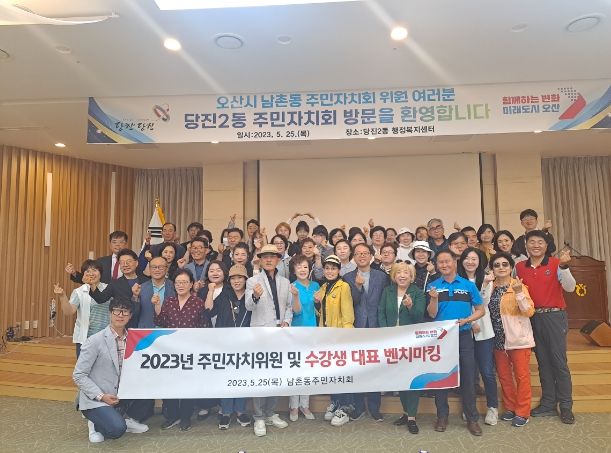 [제주교통복지신문 김강석 기자] 오산시 남촌동(동장 정찬웅)은 지난 25일 주민자치회 위원, 문화강좌수강생대표, 공무원 등 30여 명이 주민자치 활성화 방안을 모색하기 위해 충청남도 당진 2동 주민자치회로 선진지 견학을 다녀왔다고 전했다.