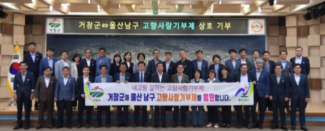 [제주교통복지신문 김강석 기자] 거창군은 지난 26일 올해부터 시행된 고향사랑기부제의 성공적인 정착과 그동안 상생발전을 위해 노력해 온 울산 남구와의 교류 협력 강화를 위해 군 공무원들이 자발적으로 기부에 동참해 훈훈한 정을 나눴다.