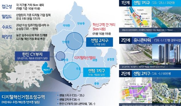 디지털 기업의 집적 현황, 산학연 협력 가능성, 주거·교통·문화 등 정주여건, 지자체 차원의 다년간 자체 조성노력 등에서 민간전문가로부터 높은 평가를 받은 부산 센텀시티 및 대구 수성알파시티가, 디지털 인재와 기업의 수요에 부합하는 최적 입지로 선정됐다.