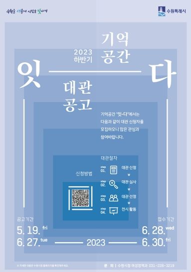 [제주교통복지신문 김강석 기자] 수원시가 시민 문화공간 2023년 하반기 ‘기억공간 잇-다’를 대관할 기관·단체·시민을 공모한다.