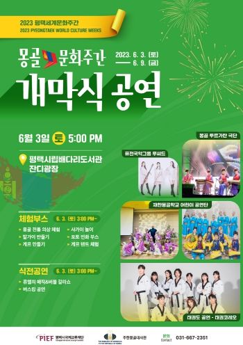 [제주교통복지신문 김강석 기자] 2023 평택세계문화주간: 몽골문화주간이 오는 6월 3일 열리는 개막식을 시작으로 6월 9일까지 7일간 진행된다.