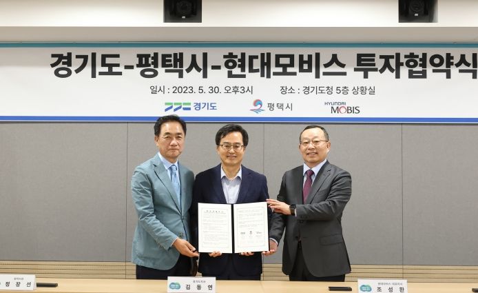 김동연 경기도지사는 30일 경기도청에서 조성환 현대모비스 대표이사, 정장선 평택시장과 이 같은 내용의 투자협약을 체결했다.