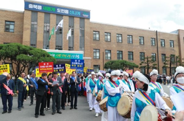 [제주교통복지신문 김강석 기자] 충북민간사회단체총연합회의 주관하에 청주도심 통과 광역철도 쟁취 범시민비상대책위원회는 5월 30일 중앙공원에서 청주도심 통과 충청권 광역철도의 조속한 확정 및 예타 통과를 염원하는 촉구대회를 개최했다.