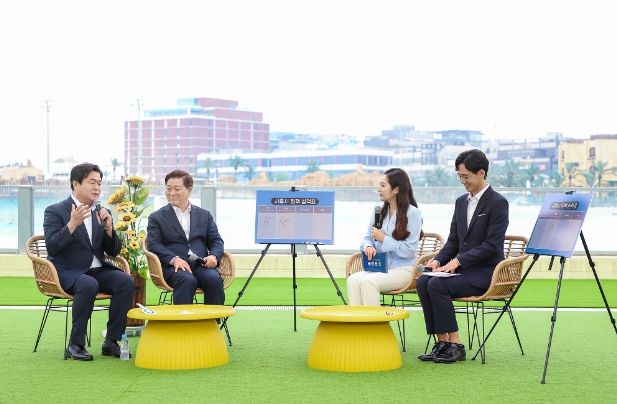 임 시장은 30일 SK브로드밴드 한빛방송 특집 대담에 출연해 민선8기 취임 1주년 소회와 향후 계획을 밝혔다. 이날 대담은 시흥웨이브파크에서 개최됐으며 임병택 시흥시장과 박승원 광명시장이 출연해 각 시의 현안과 다양한 정책 이야기를 나눴다.