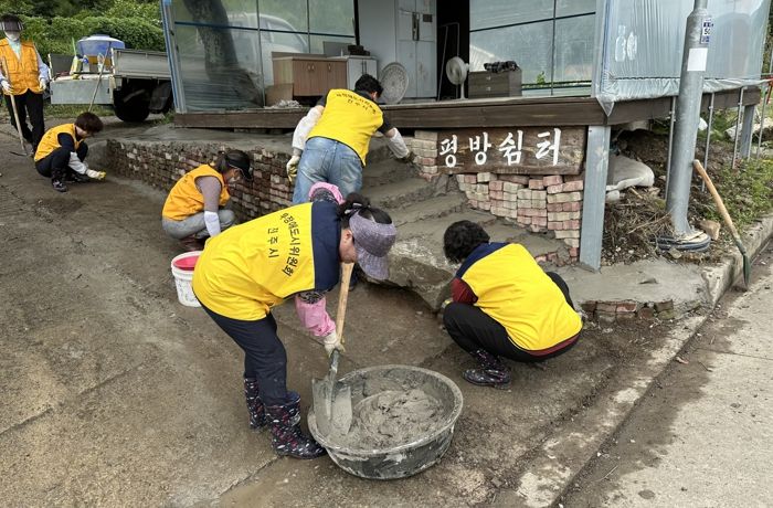 이에 이날 행사에 참여한 위원 9명은 실버카가 올라갈 수 있는 경사로를 만들고, 계단을 보수하기 위해 더운 날씨에도 직접 시멘트를 옮기고 바르며 구슬땀을 흘렸다.