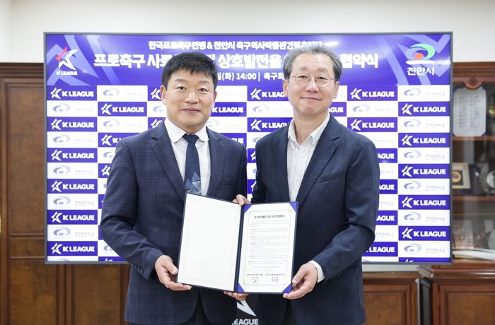 [제주교통복지신문 김강석 기자] 천안시는 (사)한국프로축구연맹과 지난 30일 성공적인 축구역사박물관 건립 추진을 위한 업무협약을 체결했다고 밝혔다.