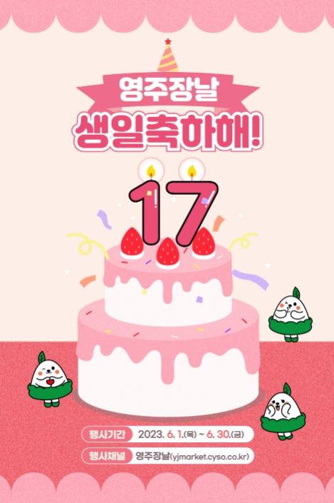 2006년 오픈한 이래 올해 17주년을 맞은 영주장날은 그동안 큰 성원을 보내준 고객들에게 보답하고자 △1만7000원 할인권 발행(1~14일) △17% 할인전(15~30일) △생일 축하 기념댓글 이벤트(13~30일) 등 다양한 행사를 진행한다.
