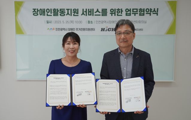 인천시사회서비스원(원장·황흥구) 인천장애인주거전환지원센터는 최근 장애인지원주택 입주민들이 원활하게 장애인활동지원서비스를 이용할 수 있도록 지역 내 서비스 제공기관 하이원복지센터와 업무협약을 했다고 31일 밝혔다.