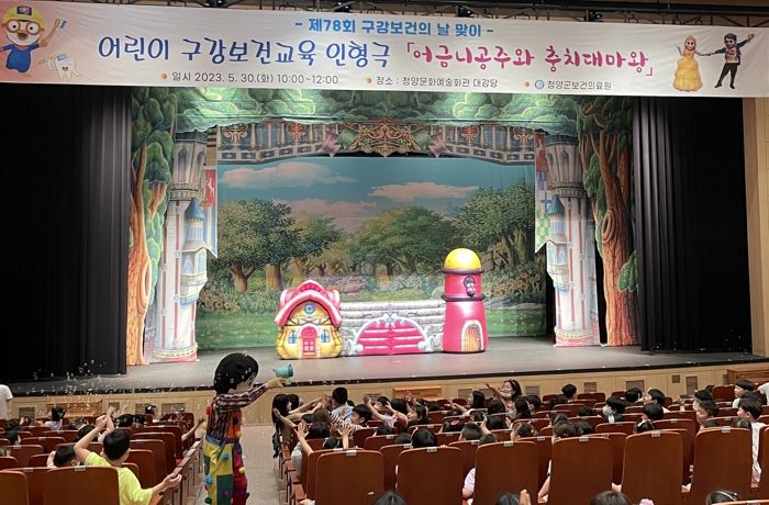 [제주교통복지신문 김강석 기자] 청양군보건의료원이 78회 구강보건의 날을 앞두고 지난 30일 어린이 구강보건을 위한 뮤지컬 인형극을 청양문화예술회관 대강당 무대에 올렸다.