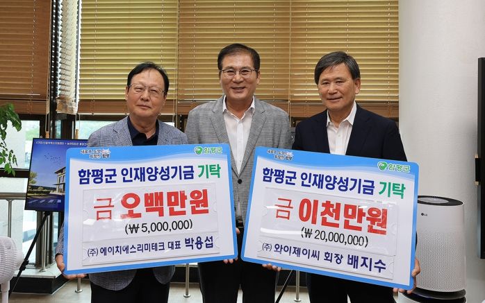 이어 함평천지프러그 영농조합법인이 1천만원, ㈜에이치에스리미테크 박용섭 대표가 5백만원을 인재양성기금으로 기탁했다.