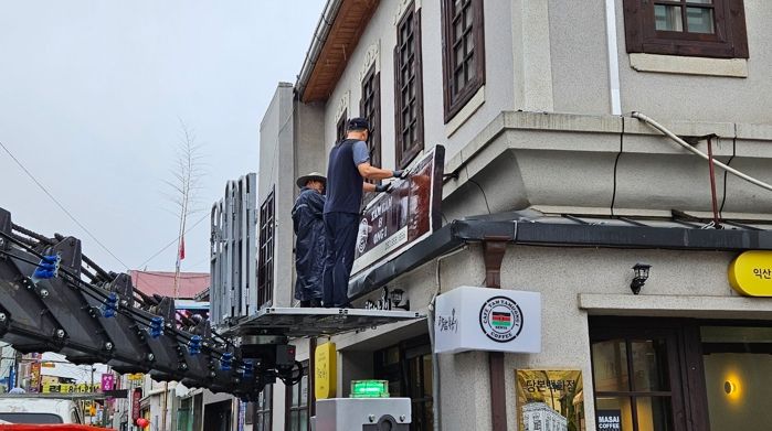 호우경보가 발효된 오전 9시경 중앙동 문화예술의거리 내 업소 간판이 전도됐다는 민원을 접수하고 즉시 전북 옥외광고협회 익산시지부와 합동으로 현장조치를 실시했다.