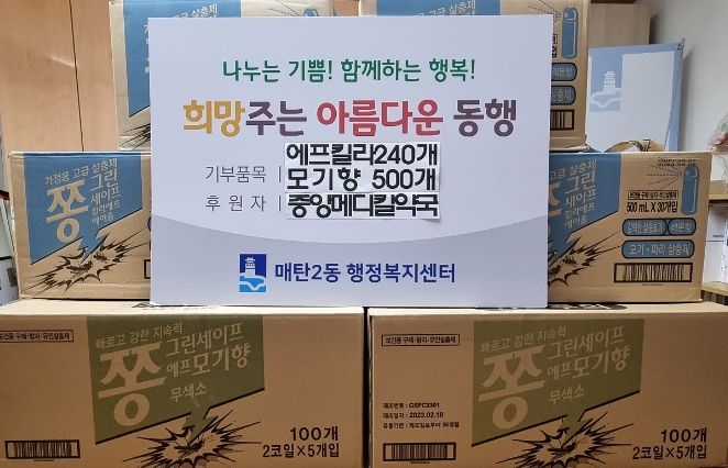 중앙메디컬약국은 2000년부터 23년간 매탄2동뿐만 아니라 인근 매탄1동, 원천동 등의 저소득 이웃들을 위해 생활용품, 모기퇴치 세트 등을 지속적으로 후원하고 있다.