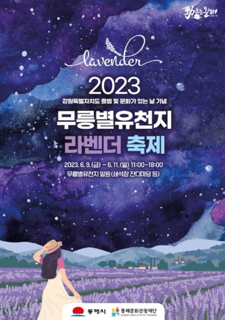 [제주교통복지신문 김강석 기자] 보랏빛으로 물든 동해 무릉별유천지에서 6월 9일(금)부터 11일(일)까지 3일간 라벤더 축제가 열린다.