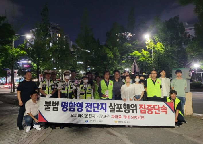 [제주교통복지신문 김강석 기자] 대전 서구는 오토바이를 이용한 불법 명함형 전단지 살포행위를 근절하고자 30일 둔산경찰서와 합동으로 집중 단속과 홍보 캠페인을 실시했다.