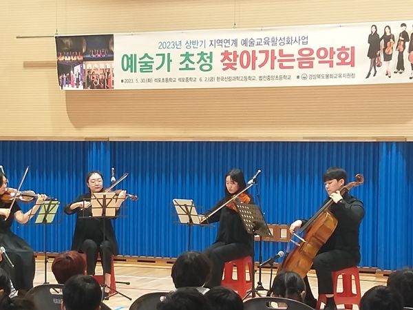 [제주교통복지신문 김강석 기자] 경상북도봉화교육지원청은 5월 30일 석포초, 석포중을 시작으로 관내 4개 초·중·고등학교 학생을 대상으로 ‘예술가 초청 찾아가는 음악회’를 운영한다.