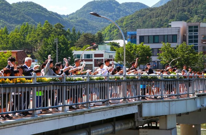 참석자들은 이 자리에서 EM활성액과 황토, 발효촉진제 등을 섞어 발효시킨 EM흙공 3천여 개를 남대천에 투하했다. 또 하천변을 돌며 비닐봉지와 페트병 등 버려진 생활 쓰레기도 수거했다.