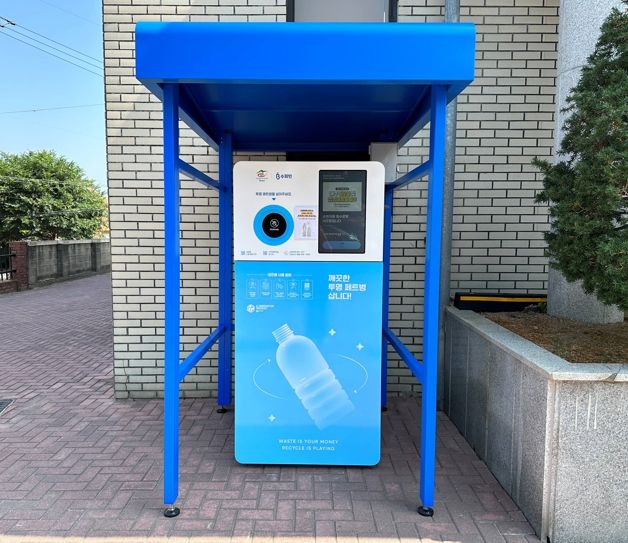 수거자판기는 투명페트병만 수거 가능하며 투입한 개수만큼 포인트를 적립해주는 기기로 라벨이 제거된 투명페트병을 투입하면 인공지능 센서를 활용해 재활용이 가능한 투명페트병만 선별해서 회수한다.