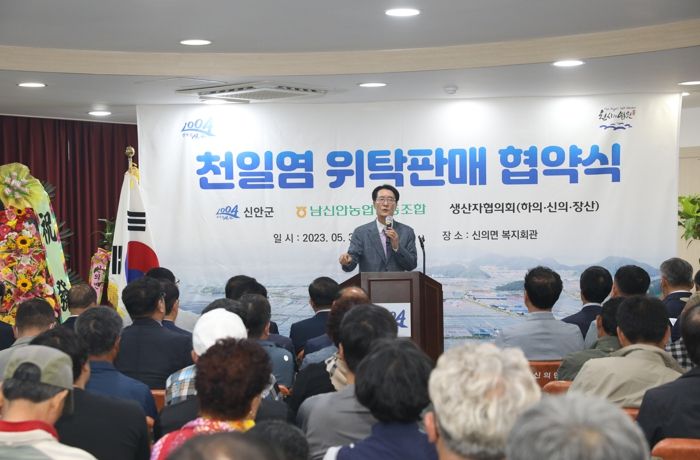 [제주교통복지신문 김강석 기자] 신안군·남신안농협·천일염생산자협의회(하의·신의·장산)는 지난 30일 신의면 복지회관에서 박우량 신안군수, 신안군의회 권오연 부의장 및 의원, 하의·신의·장산 천일염생산자협의회원 및 관내 천일염 유통 농협관계자 등 250여 명이 참석한 가운데 신안천일염의 안정적인 유통을 위한 위탁 판매 업무협약식을 가졌다.