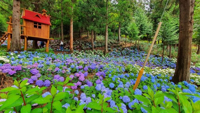 ‘윤제림’은 거의 100만 평(337ha) 규모를 자랑하는 곳으로 6월이면, 지난해보다 풍성해진 수국 4만 본이 개화를 앞두고 있다.