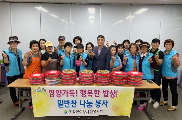 이날 봉사는 조성면 여성자원봉사회 회원 15여 명이 참여해 겉절이, 장조림, 멸치볶음 등 밑반찬 6종을 만들어 취약계층 30가구에 직접 방문 전달하고 안부를 살폈다.