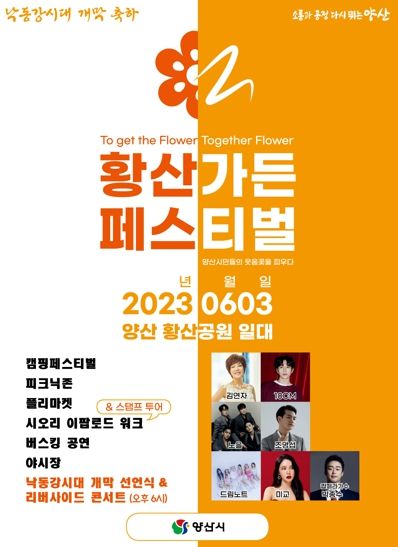 양산시는 오는 6월 3일 황산공원에서 ‘낙동강시대 개막 선언식’ 및 ‘황산가든페스티벌-리버사이드 콘서트’를 개최한다고 밝혔다.