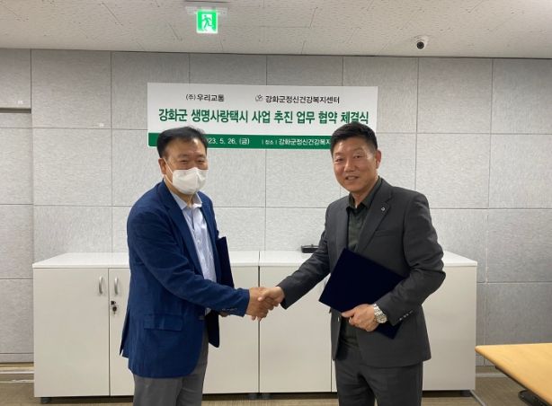 [제주교통복지신문 김강석 기자] 강화군정신건강복지센터는 26일 ㈜우리교통과 ‘생명사랑택시’ 사업을 추진을 위한 업무협약을 체결했다.