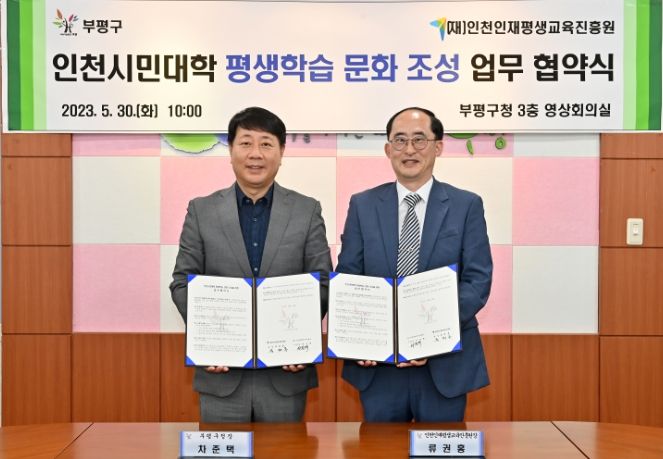 [제주교통복지신문 김강석 기자] 인천시 부평구와 인천인재평생교육진흥원은 30일 인천시민대학 평생학습 문화 조성을 위한 업무협약을 체결했다.