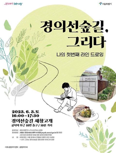 경의선숲길공원에서는 숲길의 식물, 사람 등을 관찰하고 연필을 이용하여 그림을 그려보는 ‘경의선숲길, 그리다(나의 첫 번째 라인드로잉)’ 프로그램을 6월 3일 16시에 새창고개(공덕역 인근)에서 진행할 계획이다.