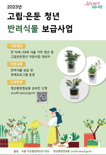 현재 서울의 고립·은둔청년은 12만 9천여 명으로 추정. 시는 청년구직난과 코로나19 장기화로 고립·은둔 청년 문제가 더욱 심각해졌다며 반려식물을 매개로 세상과 소통하고 사회 적응력을 키울 수 있도록 다양한 지원을 펼칠 계획이라고 덧붙였다.